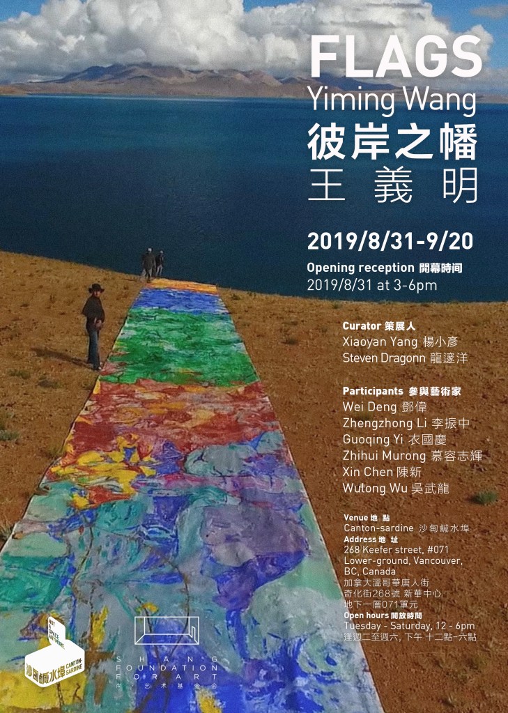 《彼岸之幡——王义明温哥华个展》由中国著名艺术评论家、中山大学教授兼博士生导师杨小彦,与加拿大独立策展人龙邃洋联合策划,将于2019年8月31日下午3时在沙甸咸水阜Canton-sardine开幕,展期至9月20日,诚邀各界朋友莅临开幕式,艺术家王义明将向观众分享他的心路历程。