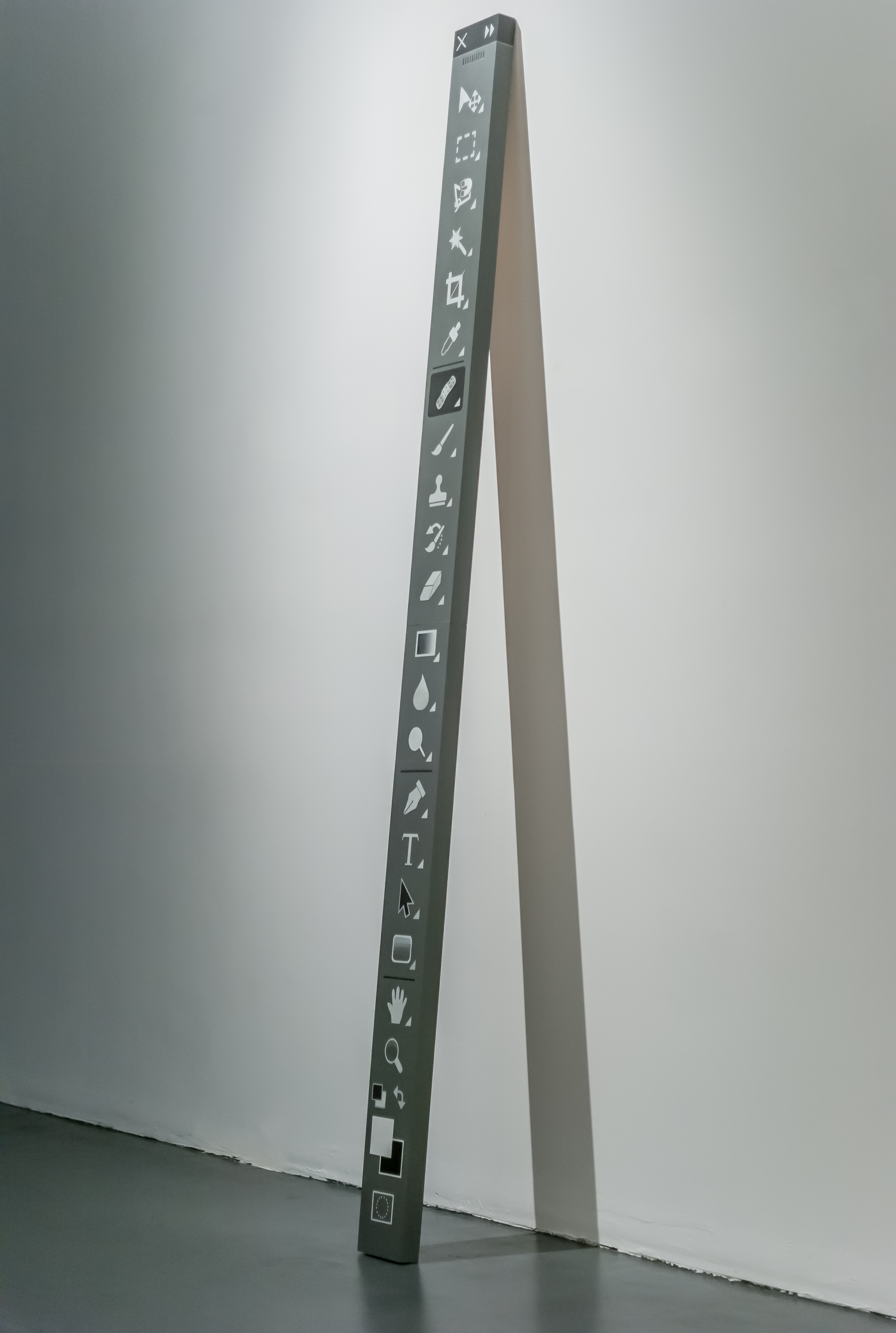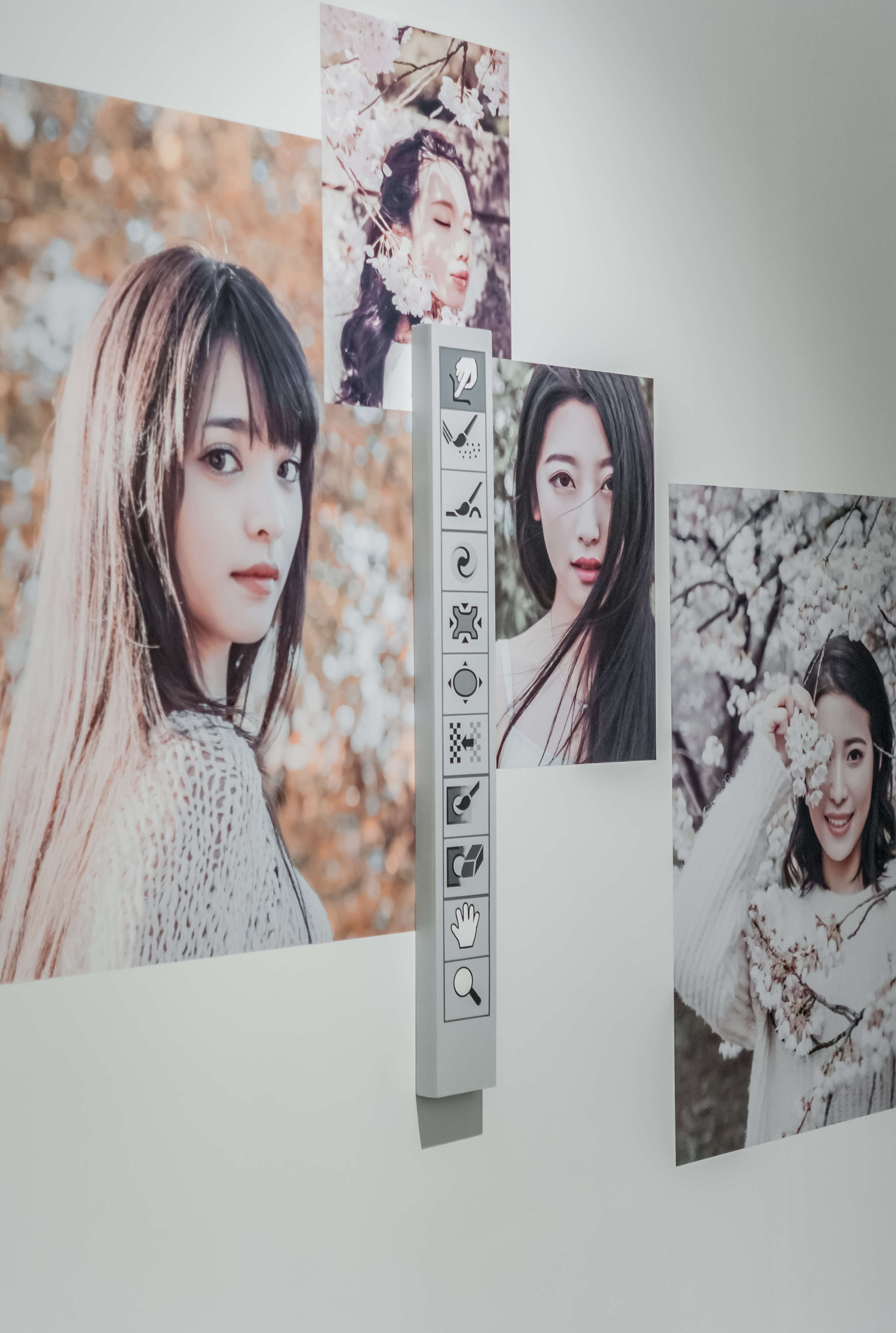 The “Healing Brush”, as appeared in the exhibition title, is the name of a retouching tool from Photoshop utilized to make invisible, to conceal, and to recover the absolutes and the ideals from imperfections and blemishes. The series of works, ranging from photography, video animation, painting and photo-installation, circulates around Yi’s role as a commercial photographer in the industry, acting both as a spectator and fabricator to an aesthetic standard coming to form.