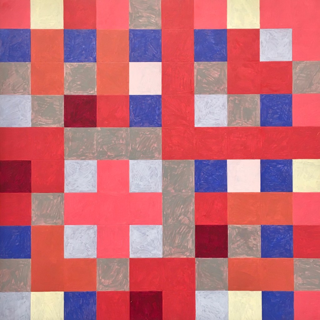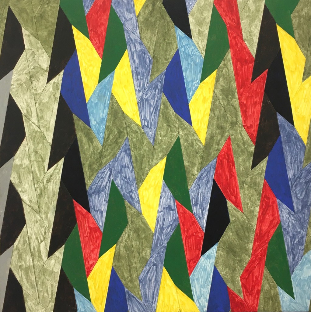 Isogonal25_mod15 (primaries) | egg tempera, gesso, muslin, on panel | 15” x 15” | 2019