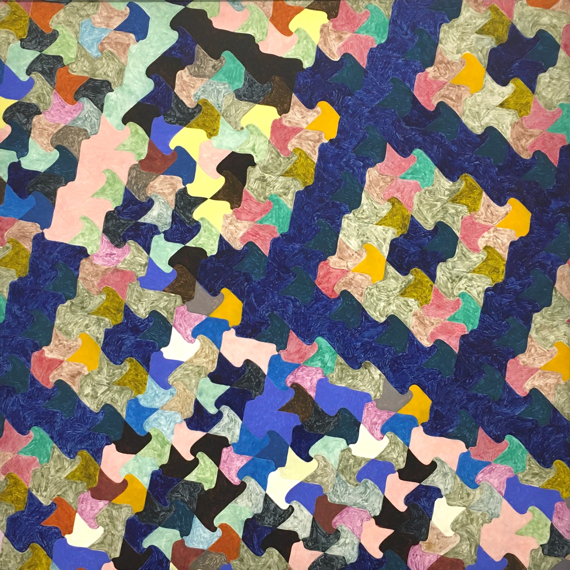 Isomonohedral_pg31 D19mod20 (riddim) | egg tempera, gesso, muslin, on panel | 15” x 15” | 2019