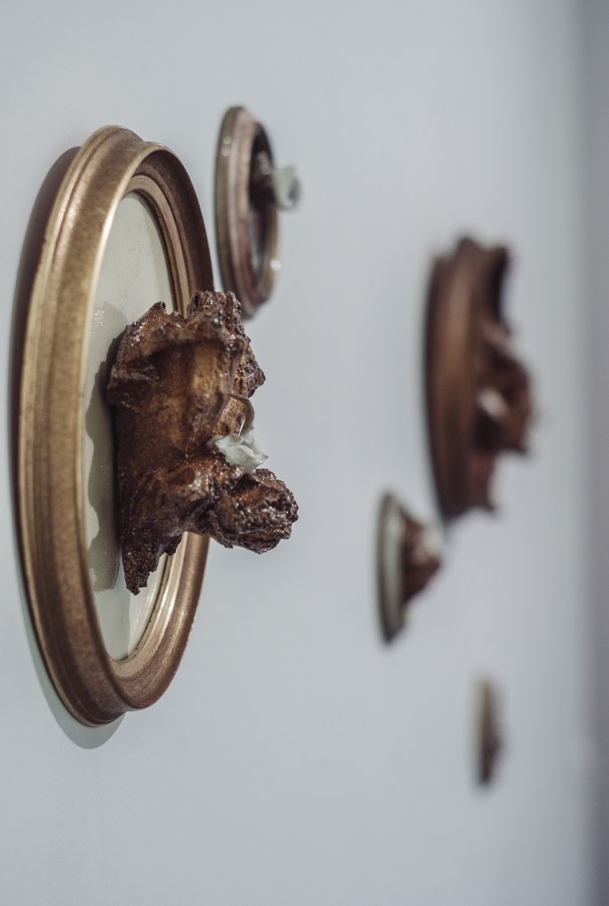 Wei Cheng spoke of finding intriguing litter on her journeys to and from her studio. Layered within her spontaneous interplay with the material, and the firing process, she integrates these found objects in many of the pieces with an unusual restraint. Wei Cheng also spoke of using her intuition, as opposed to analyzing her interactions. A fraught and brave process. Dragonn wrote, “Cheng attempts to break apart from the shackles of ceramic’s inherent qualities….”