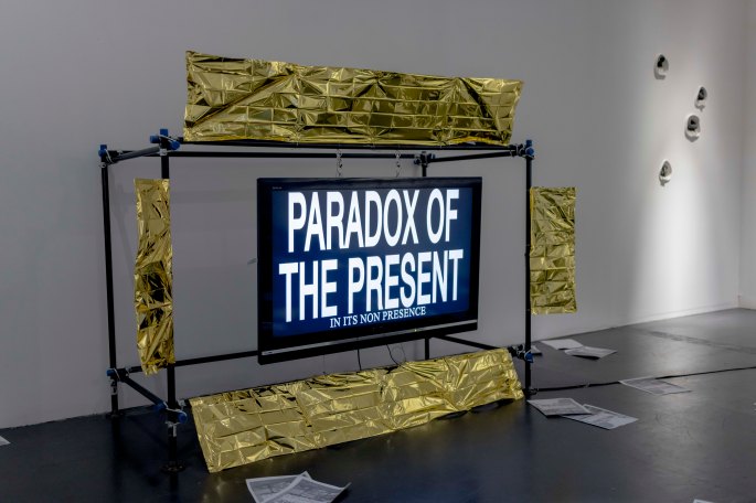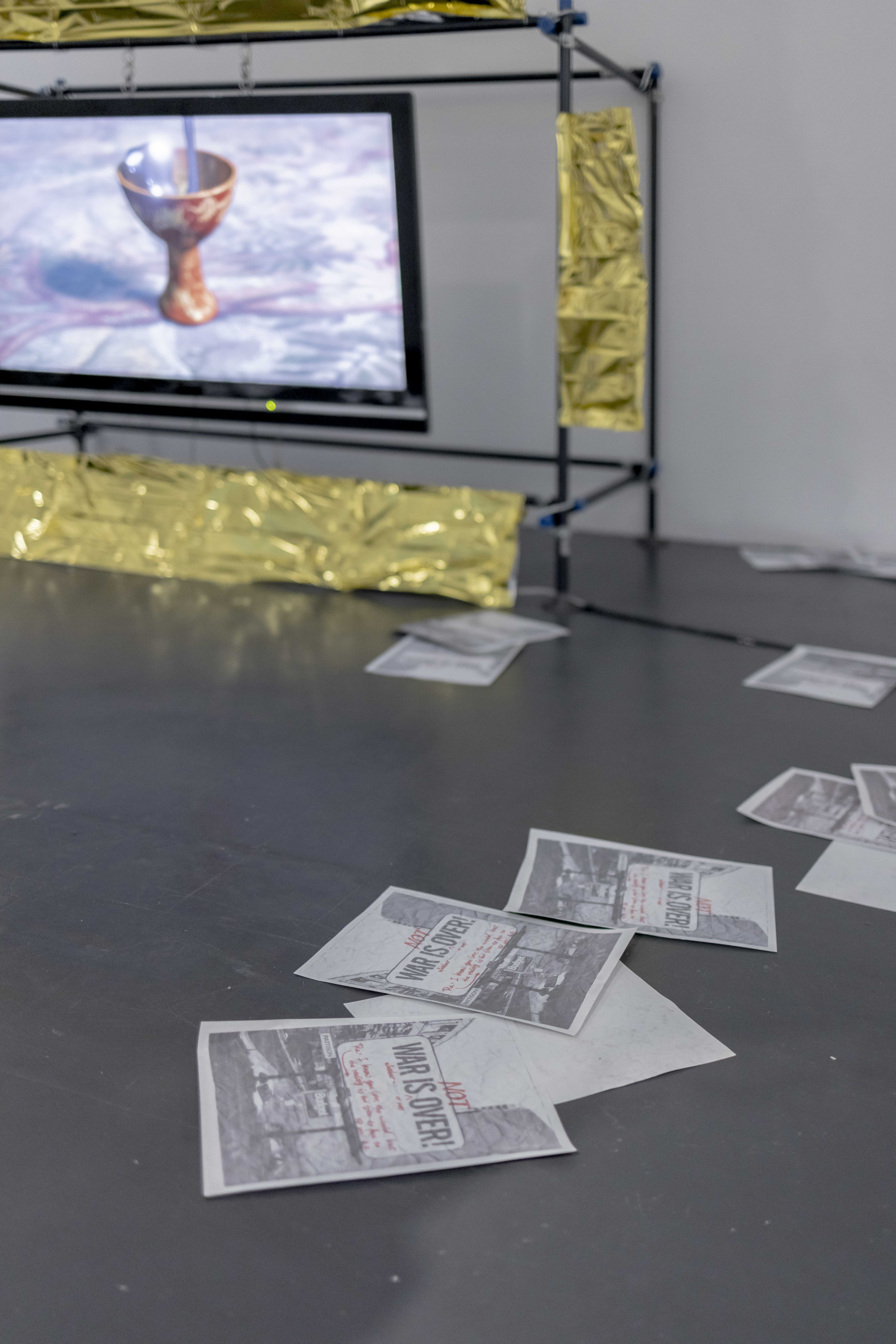 Tale of Ten Suns / Pongsakorn Yananissorn / Video / 7’ (multiple videos), metal, golden foil, tv screen / 2022
