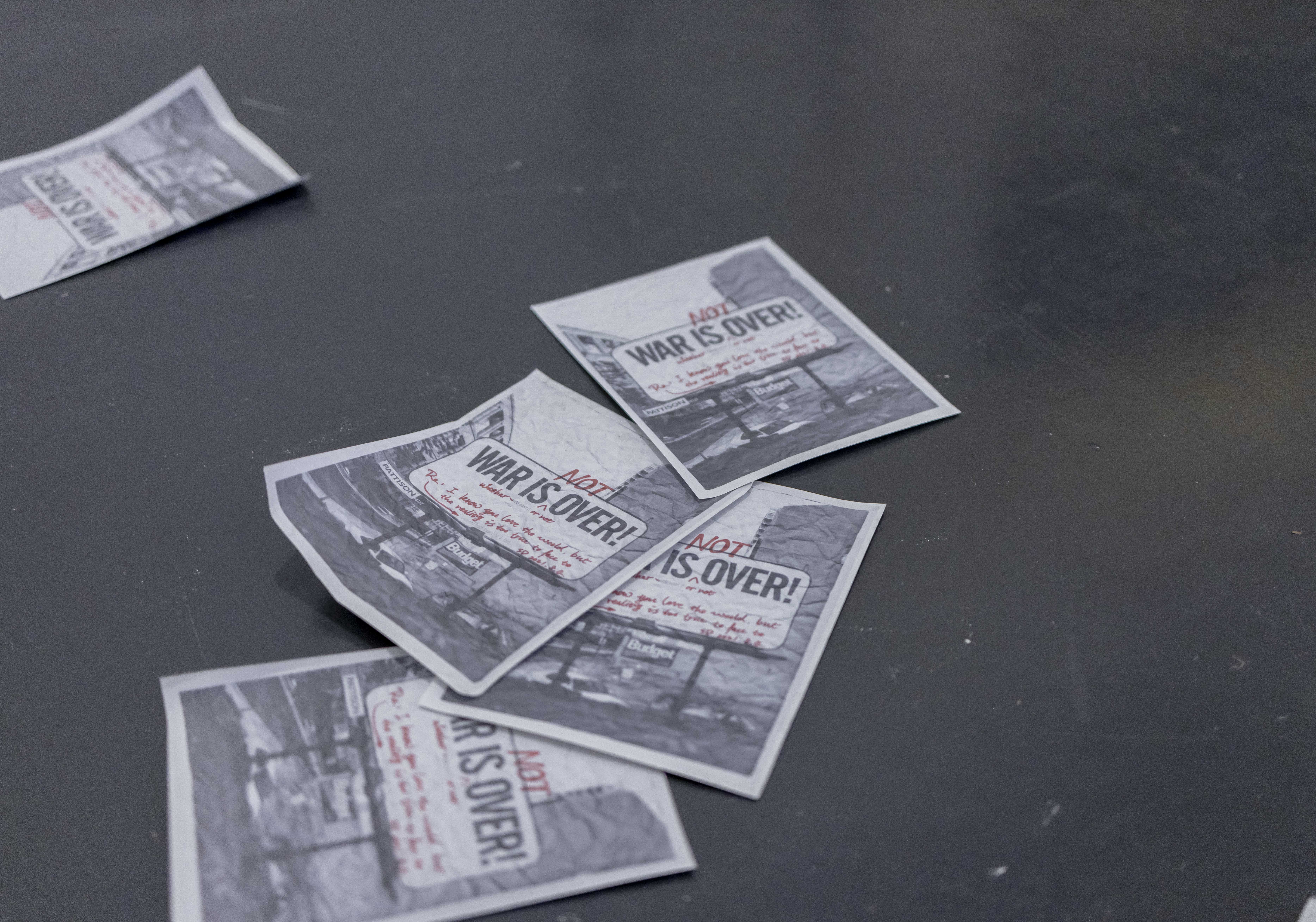 The Future is Our Fault & War is not over! / Steven Dragonn / Fake bullet holes on the wall, Inkjet print on papers / size variable / 2021