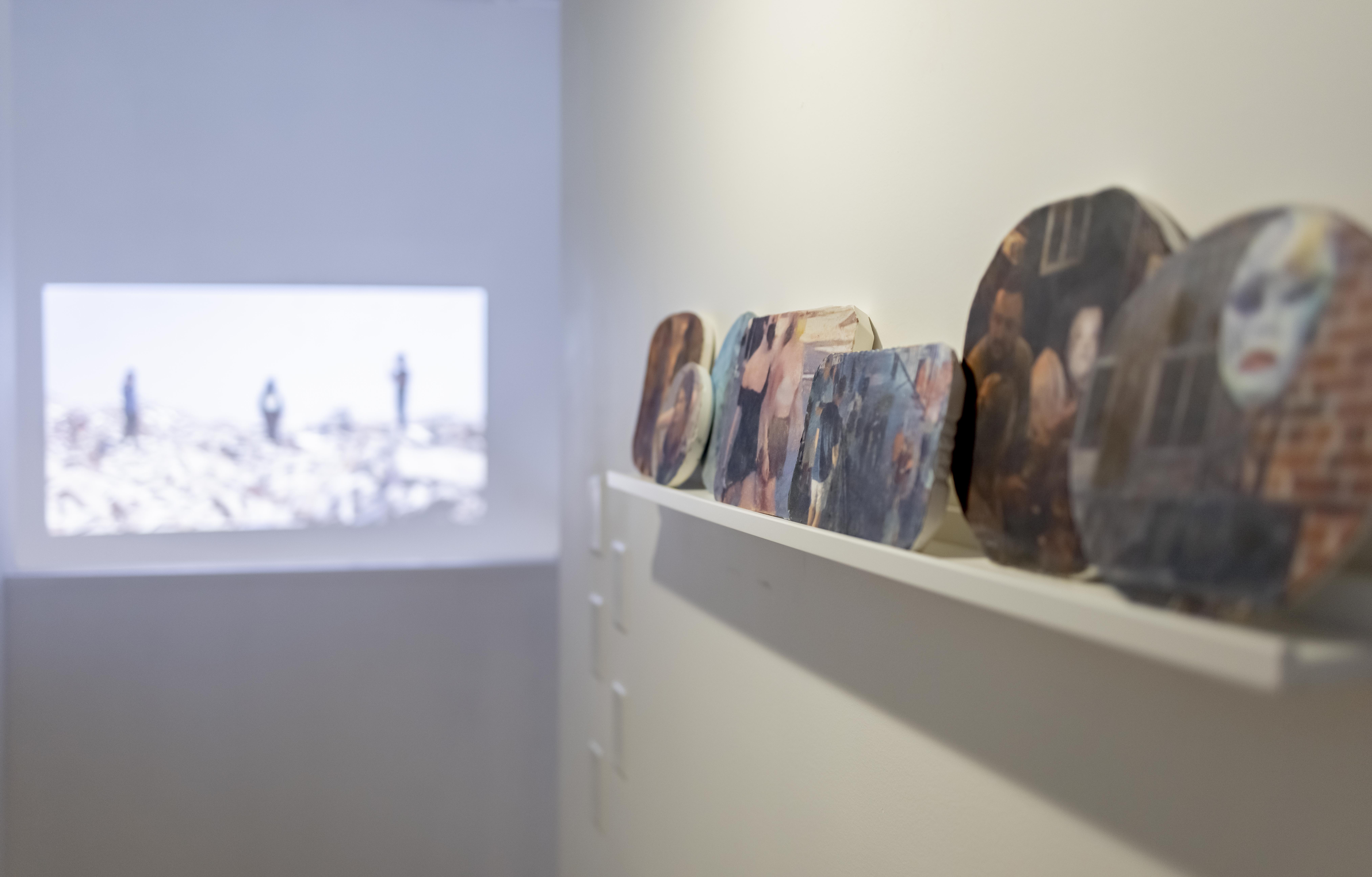 This work is showcased as a timeline where elements of time have been fixed in several places of the world during the same day and the same hour. Using surveillance cameras that record places and humans in a random way, the artist composed a score with plaster supports that give a different rhythm and underline the event that is inscribed. Praying for time is the uncompromising look of a machine on the human and the world. Will the traces we leave be readable for future generations? What to read of our time? Ella Mievovsky is a French/Russian artist based in Moscow and Lyon. She graduated from Rodchencko art school in Russia in 2019. Her work has been mainly seen in several group shows in Moscow, Paris and Lyon. She questions our perception of images through new technologies.