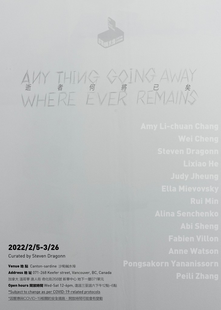 Exhibition Title: Any Thing Going Away, Where Ever Remains
