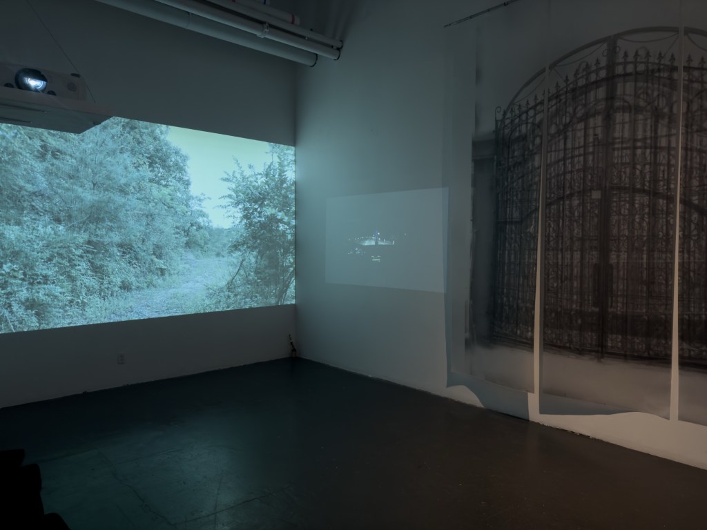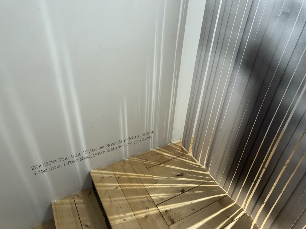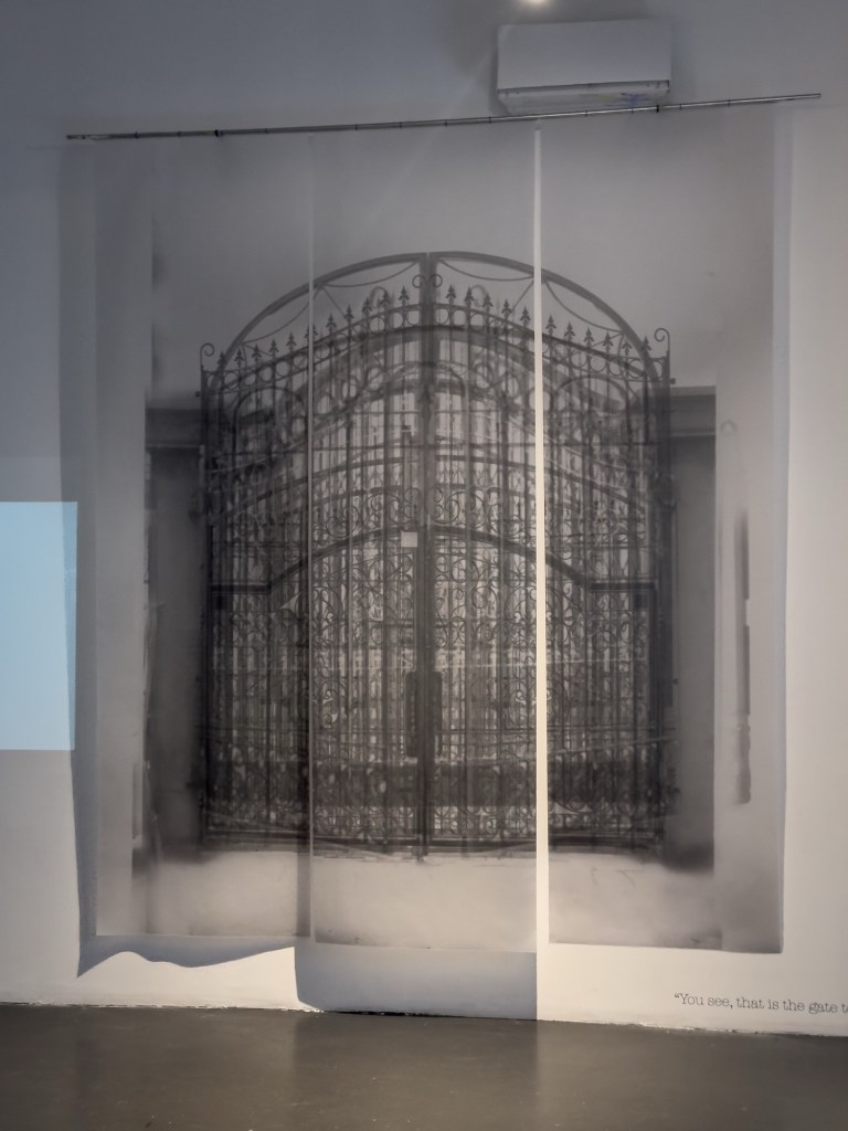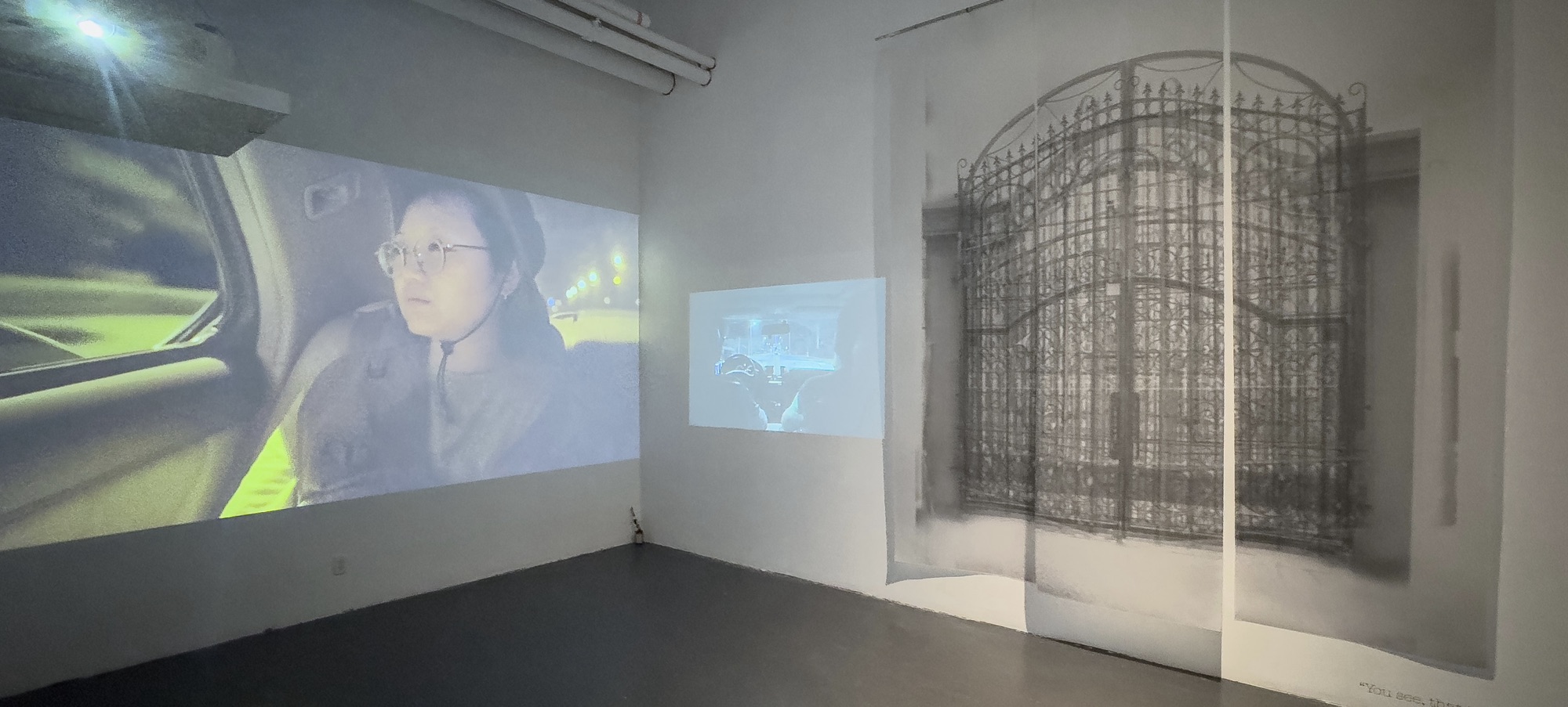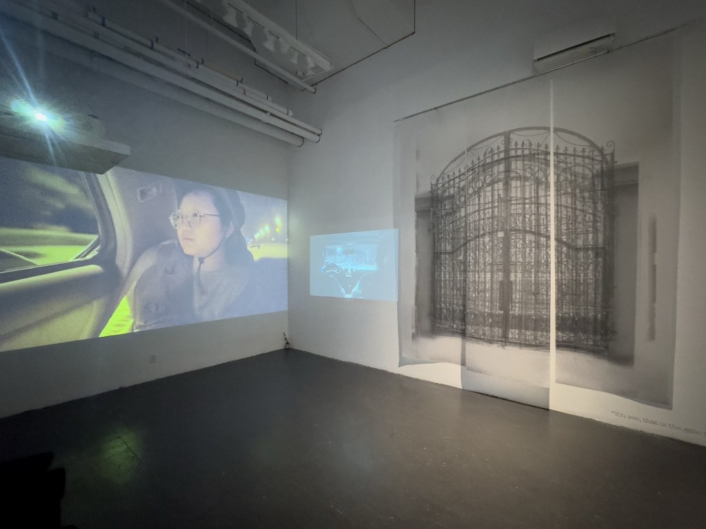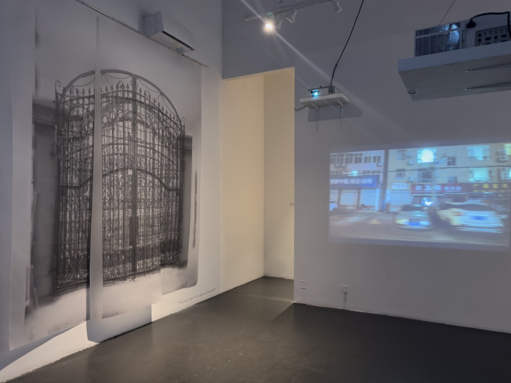 Years later, Charlotte gradually realized the long-lasting impact of the trauma formed that night on her subsequent life. She searched online for various photos of courtyard iron gates and edited them, trying to recreate the fleeting “gateway to America” from that night. At the same time, she sifted through the archive of family photographs organized by her mother to seek for details and clues about that night. She revisited the city of her birth, wandering through locations that carried the fragmented memories of her childhood, and re-enacted that late-night journey. Through interwoven dialogues, memories, and field notes, the artist gradually unfolds an inquiry into the diasporic subjectivity.