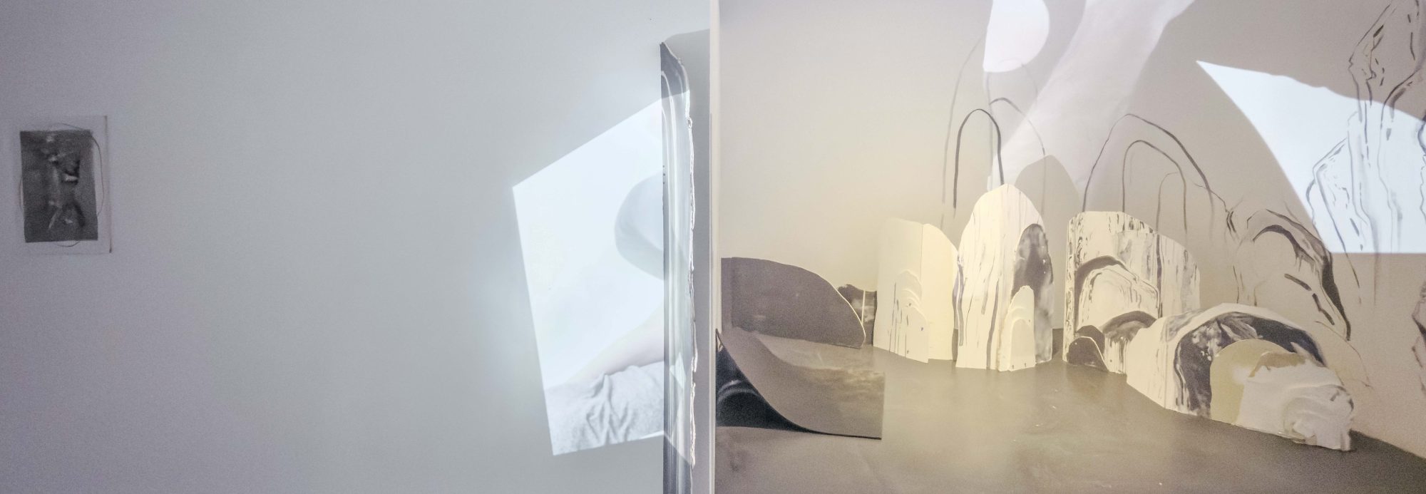 This exhibition explores the performance of the human body and its relationship to landscape. It takes the form of an immersive composition of fragmented bodily forms, presented through recordings of breathing and stretching exercises and gestural illustrations of caves and mountains, folding the body and landscape together. The repetitive labour, flexibility, and endurance involved in both bodily poses and material processes allude to practices of release and self-regulation, as an embodied metaphor for social and institutional participation in everyday life.