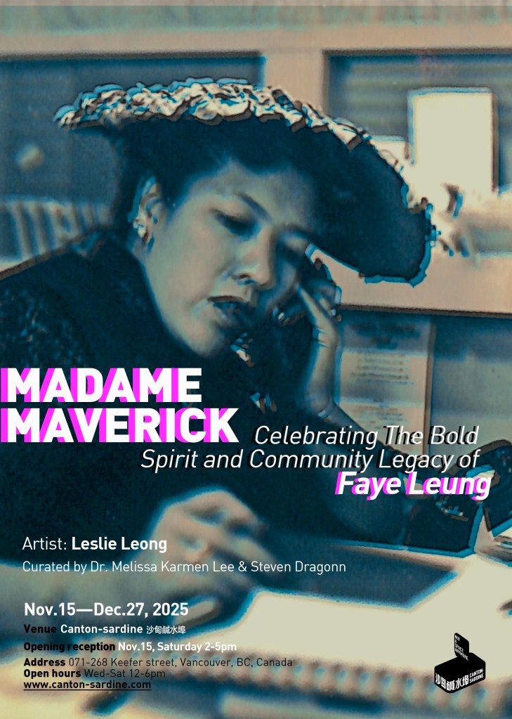Madame Maverick celebrates the life and legacy of Faye Leung (1932–2024), Vancouver’s legendary “Hat Lady,” a fearless entrepreneur and community force, a singular figure in Vancouver’s Chinese Canadian community whose sartorial flamboyance was inseparable from her strategies of self-determination and public presence. Leung disrupted both gendered and racialized expectations of business decorum by appearing in sequined gowns and elaborate hats while negotiating high-stakes real estate and commercial ventures. In doing so, the exhibition contributes to broader conversations about how personal aesthetics can operate as a mode of resistance, cultural continuity, and political visibility within minoritized communities.
