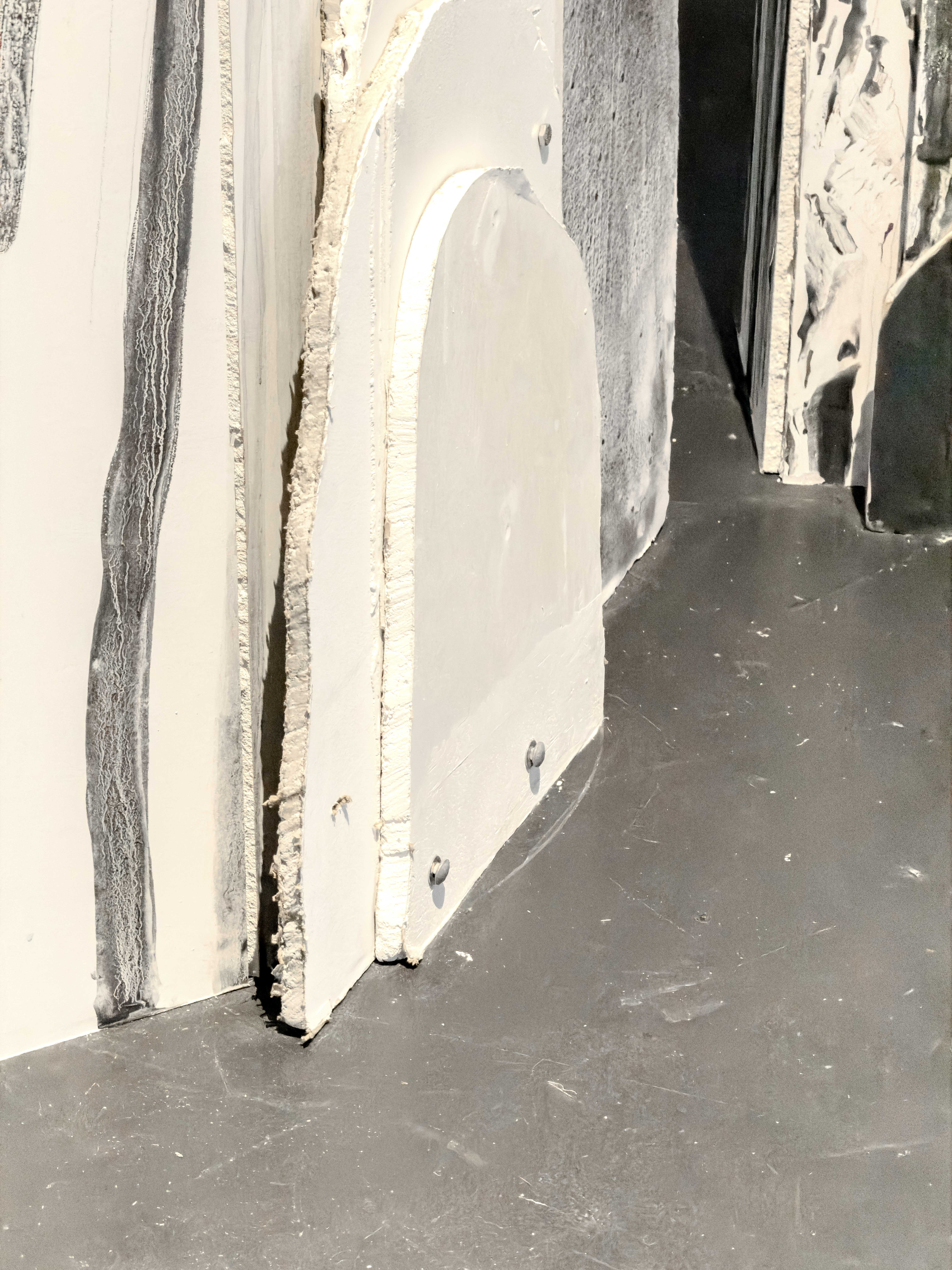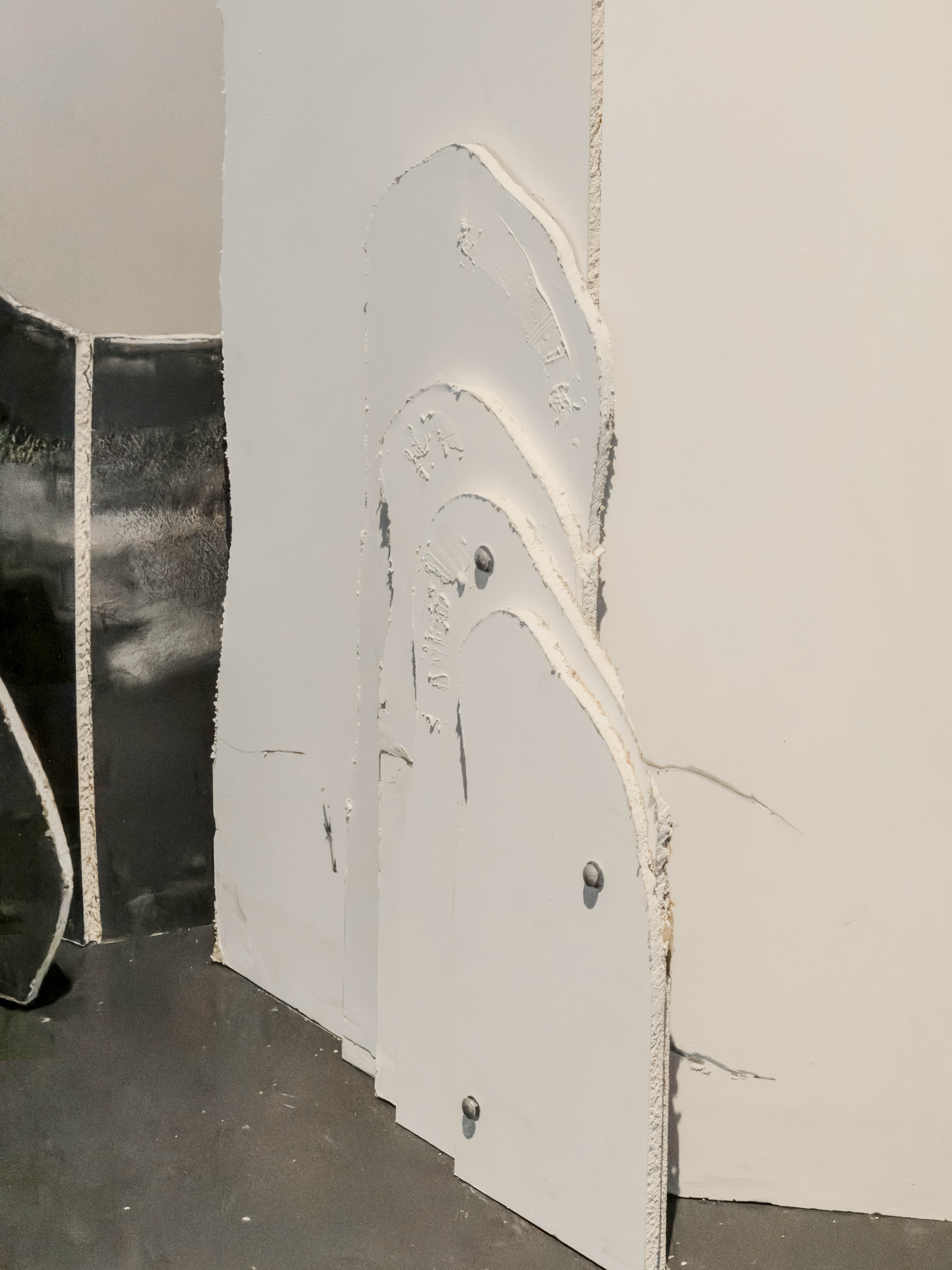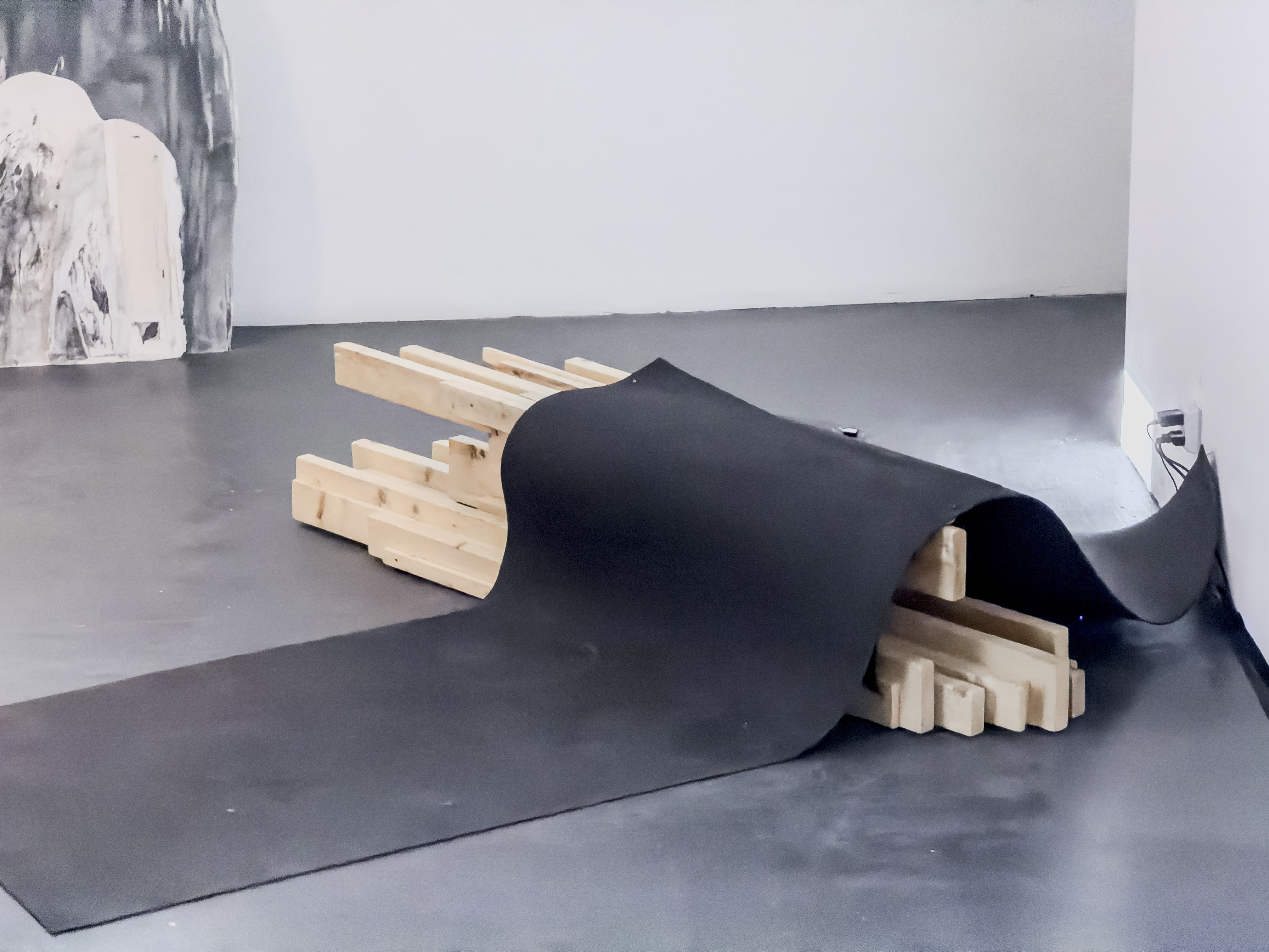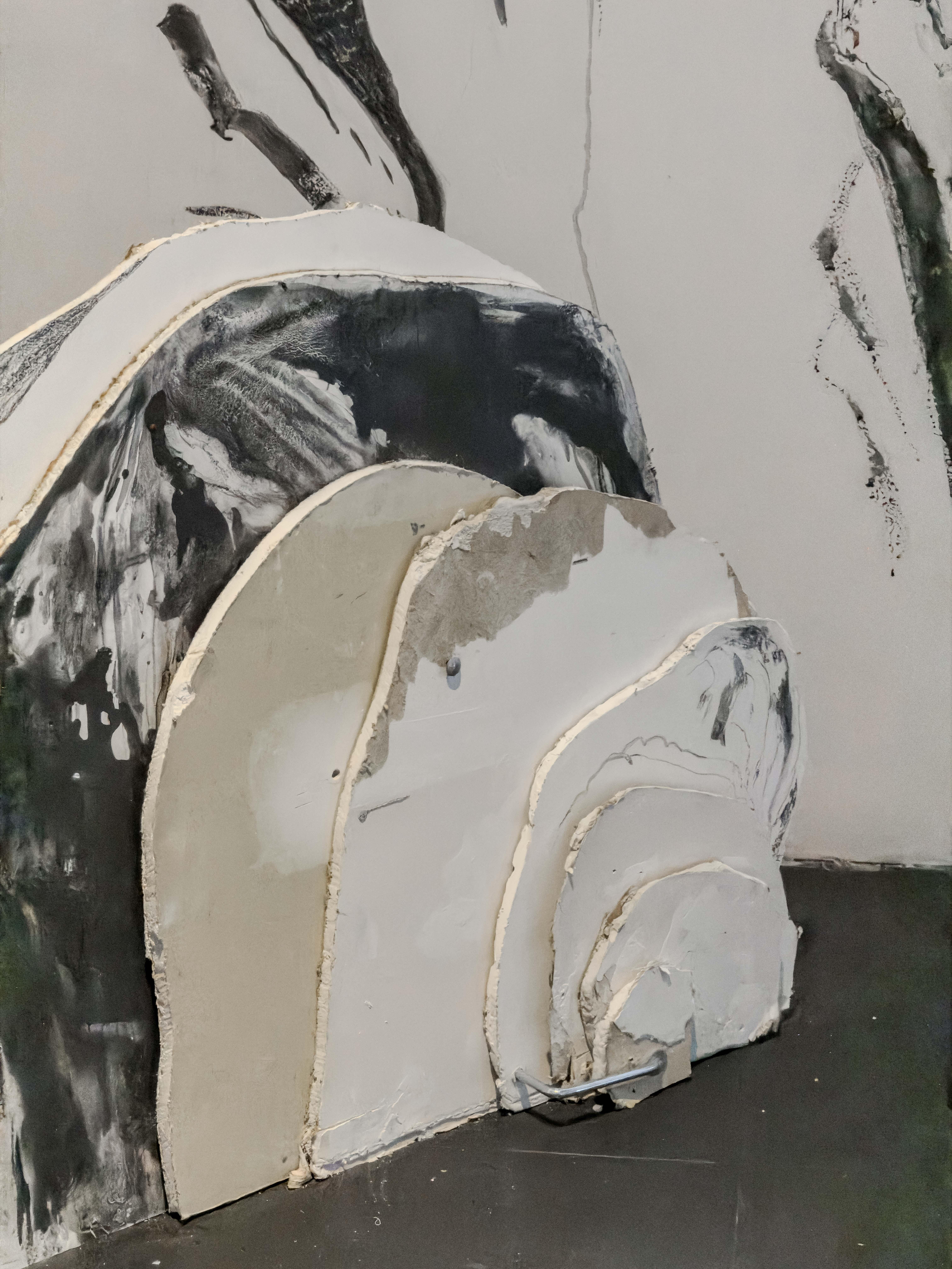 This exhibition explores the performance of the human body and its relationship to landscape. It takes the form of an immersive composition of fragmented bodily forms, presented through recordings of breathing and stretching exercises and gestural illustrations of caves and mountains, folding the body and landscape together. The repetitive labour, flexibility, and endurance involved in both bodily poses and material processes allude to practices of release and self-regulation, as an embodied metaphor for social and institutional participation in everyday life.