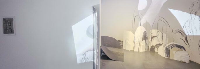 This exhibition explores the performance of the human body and its relationship to landscape. It takes the form of an immersive composition of fragmented bodily forms, presented through recordings of breathing and stretching exercises and gestural illustrations of caves and mountains, folding the body and landscape together. The repetitive labour, flexibility, and endurance involved in both bodily poses and material processes allude to practices of release and self-regulation, as an embodied metaphor for social and institutional participation in everyday life.