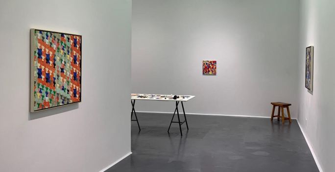 A Way to Finish Thinking presents a new group of abstract paintings by Eli Bornowsky. Created in Brooklyn and Regina over the last year, the egg tempera paintings in this exhibition evidence a return by Bornowsky to his earliest emphasis of polychromy, geometry and optical experience. Building on these early interests, the pictures are composed using modern mathematical number series, stochastic processes, geometric tessellations and computer software. Bornowsky has said that the structures generated with these mathematical and technological means both pressurize and problematize the artistic impulse for subjective expression. Expression is suspect: better to evacuate the artwork of its significant references and observe what is pulled into the remaining vacuum.