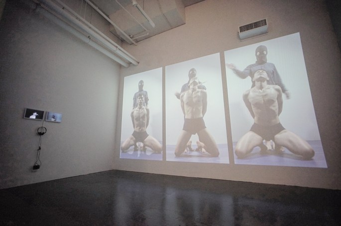 The relation of the openness of communication counterposed with the intimacy of sexual desire illustrates when power dominates the body, on the one hand, creates rational needs and desires of the body; on the other hand, rouses repressive illicit desires and needs. In Another Chord, a three-channel performance video, the artist exposes physical punishment in mundane renditions of marching song, trinity, and execution, a work stemmed from the reflection of He’s chronic pharyngitis. In body politics, the negligence of body organs and their function is perceived as a physical deficiency.