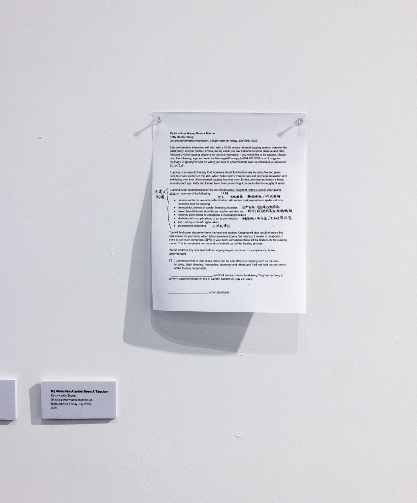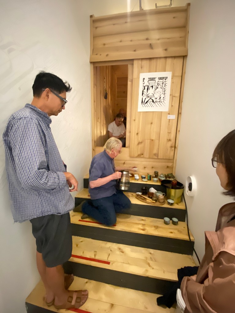 We ultimately selected 5 interactive projects, each offering a unique experience: Kristin Man’s Game of Truth: This project is a game that involves divination and walking related to Eastern ancient studies such as the I Ching and Yoga. It also combines VR for human-computer interaction. Audiences can participate freely or interact with the artist under her guidance. Ketty Haolin Zhang’s My Mom Has Always Been A Teacher is a project appropriates the folk tradition of cupping therapy and transforms it into a private health workshop held within the sauna room. Ketty’s mother conducts the cupping, and audiences can participate by making reservations after signing a wavier which shouldn’t exist in the traditional way but it usually appears in Canada for avoiding unexpected responsibilities. Bryan Mulvihill Trolley Bus’s Sauna Gambling appropriates an ancient tradition from China, Japan, and Korea—tea fighting. Participants engage in a game of tea evaluation, and the winner receives all the artworks brought by other participants. KitKit Para’s $234 Beef and Broccoli but No Beef is an interactive performance and installation deeply rooted in Hong Kong culture. It uses humor and satire related to post-pandemic inflation and diet culture. The artist utilized a government subsidy of $234, intended to counteract inflation, to cook (operated by me) 10 kilograms of broccoli with beef flavor sauce with the sauna heater, then distributing it to 30 participating audiences. Timothy Fernandes & Arti Struyansk’s techno music performance HeatTek: turned the gallery space into a night club with energetic music to the closing party.